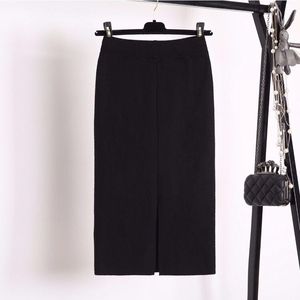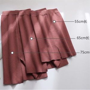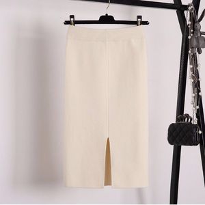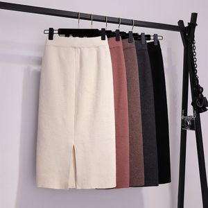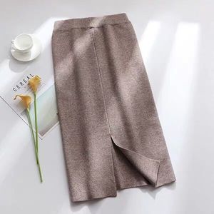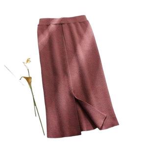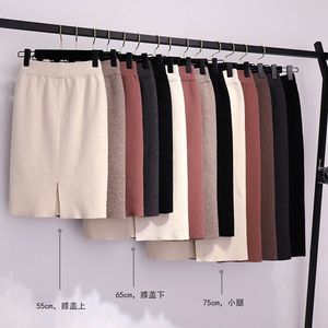 中长款针织半身裙女秋冬季高腰一步裙包臀裙长裙加厚开叉毛线裙子