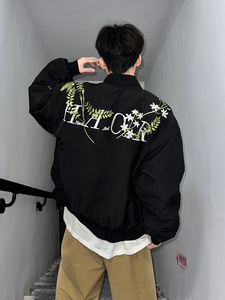 美式复古花卉刺绣飞行夹克男款秋季潮牌棒球领上衣bmober薄款外套