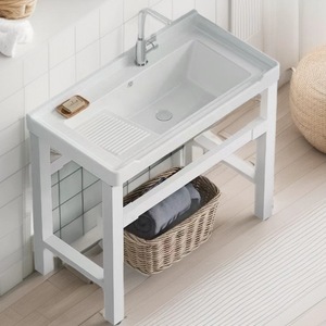 9048搓衣盆+白色加粗架+龙头+镜