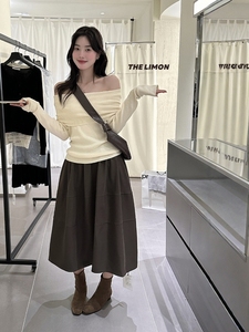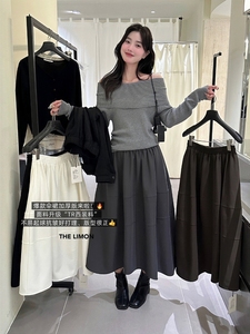 THE LIMON柠檬绿茶秋季赫本风立体剪裁显瘦高腰休闲风伞半身裙女