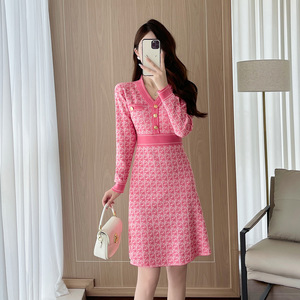 小香风秋冬季长袖洋气针织连衣裙女显瘦内搭法式高级感A字毛衣裙