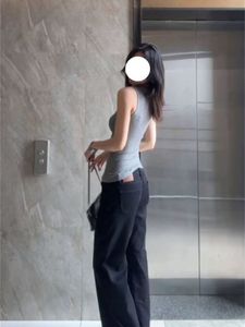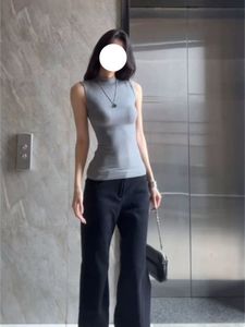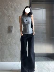 美式辣妹灰色半高领无袖背心恤女夏弹力紧身显瘦别致打底衫上衣