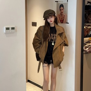 季2025短款好看早秋薄外套初秋新款巨夹克外套女春秋休闲的麂皮绒