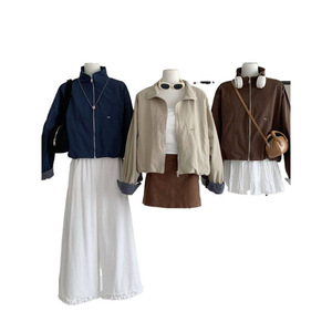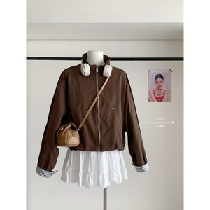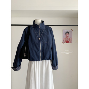 塞纳韩系格子拼接立领夹克外套女2025秋季新款宽松休闲棒球服上衣