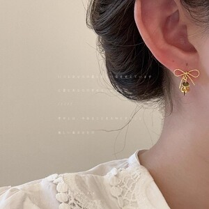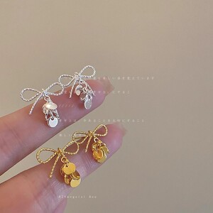 精致甜美麻花蝴蝶结亮片耳钉女轻奢优雅时尚气质潮流百搭耳环耳饰