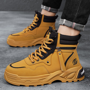 秋冬男士高帮厚底马丁靴户外工装休闲短靴直播英伦登山战术大黄靴