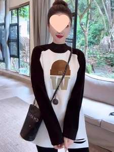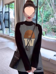 磨毛长袖恤女秋冬宽松中长款半高领内搭打底衫搭配鲨鱼裤的上衣