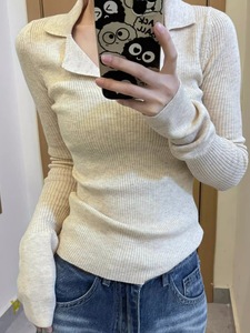 纯欲风辣妹POLO针织衫女早秋穿搭打底设计感小众修身显瘦别致上衣