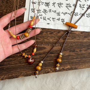 新中式木珠椰壳圆形串珠项链复古民族风锁骨链小众高级感项饰批发