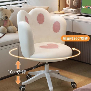 猫爪电脑椅子家用卧室女生宿舍旋转化妆椅书桌椅软包可升降靠背椅