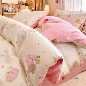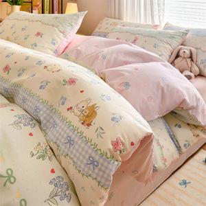 热款床上四件套纯棉透气裸睡床上用品床单四件套床单被罩三件套