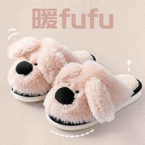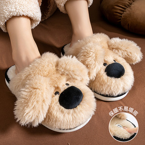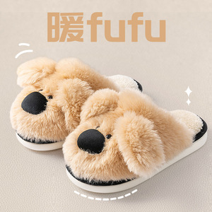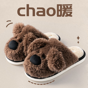毛毛绒潦草狗棉拖鞋女2025室内家居防滑保暖毛绒敲暖踩屎感棉鞋女