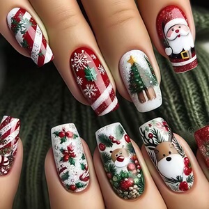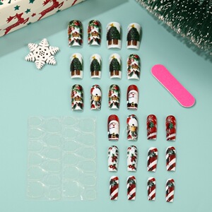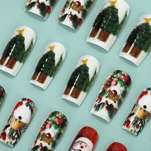 跨境流行圣诞美甲圣诞老人驯鹿穿戴甲雪花圣诞装饰假指甲贴片2518
