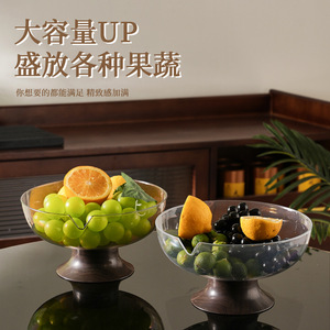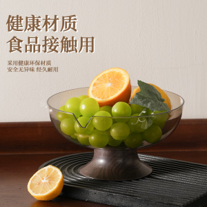 高脚木纹水果盘客厅家用新款高颜值茶几果盘轻奢风沥水托盘干果盘