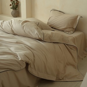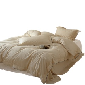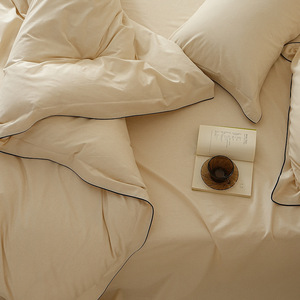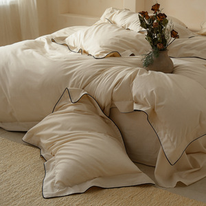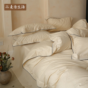 轻奢裸睡棉麻四件套a类宽边嵌绳被套轻奢高级感纯色床上用品套装