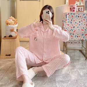 东南亚日韩跨境云朵棉睡衣女秋季印花翻领家居服套装可爱卡通新款