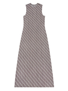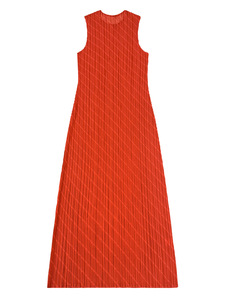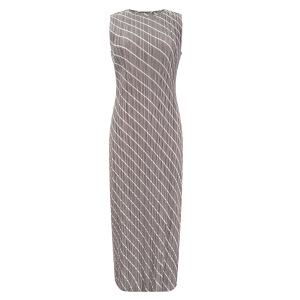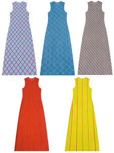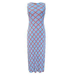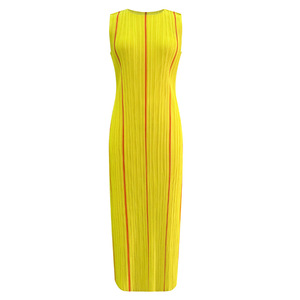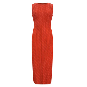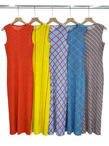 褶皱春夏新款2025无袖显瘦中长裙圆领套头气质线条印花连衣裙女