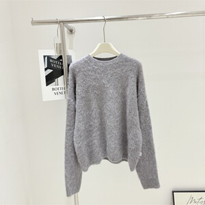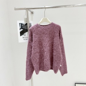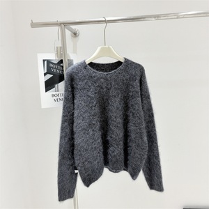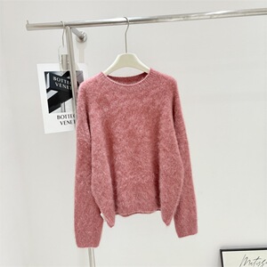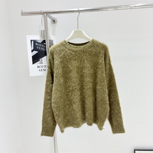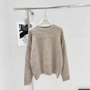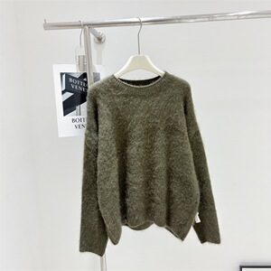 2025秋冬款拉毛羊毛厚毛衣女套头圆领宽松慵懒软糯针织打底衫上衣