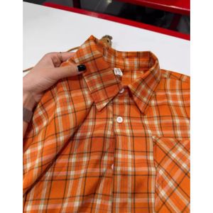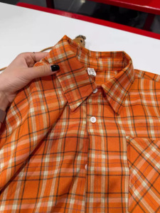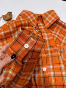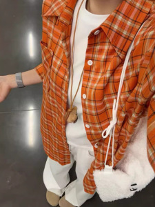 美式复古橙色格纹长袖衬衫女春秋小众设计感宽松休闲防晒情侣外套