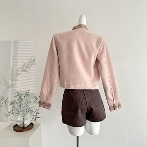 2025实拍秋季新款女式翻领撞色百搭长袖外套显瘦短裤套装