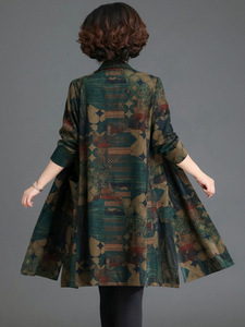 加肥加大码女装风衣中长款外套新款印花春秋洋气中老年妈妈上衣女