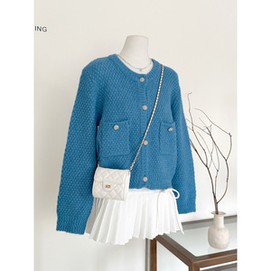 塞纳复古蓝一眼吸睛 颜色满分厚实感毛衣针织开衫2025秋季新款