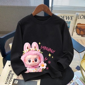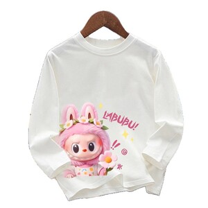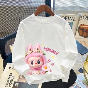 女童白色纯棉拉布布正肩长袖t恤2025春秋新款中大童卡通印花上衣