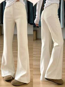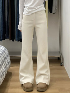 杏色灯芯绒裤子女2025新款春季高腰显瘦微喇裤小个子不贴腿喇叭裤