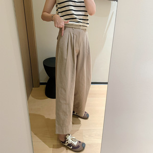 100棉立体双褶宽边九分裤早秋宽松直筒纯色巨显瘦休闲裤