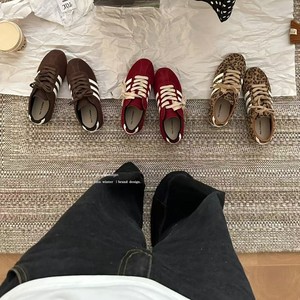 圆头复古大红色阿甘德训鞋女2025秋冬新款运动休闲ins豹纹板鞋女