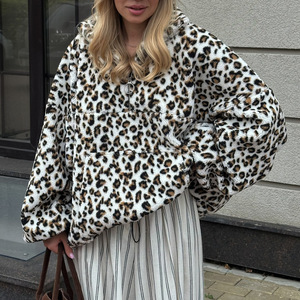 跨境欧美豹纹羊羔绒套头卫衣宽松版型超舒适毛绒软糯秋冬街头潮酷