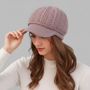 跨境老人帽子女奶奶秋冬季针织毛线帽鸭舌保暖盆帽中老年妈妈加绒