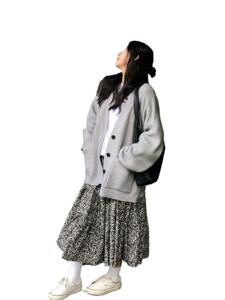 灰色毛衣开衫外套女2025新款慵懒风宽松v领针织衫深秋秋冬季穿搭1