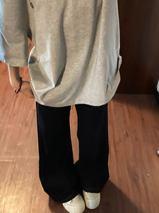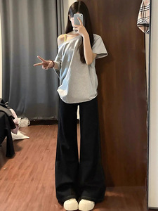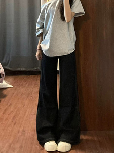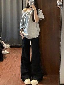 黑色大码微喇牛仔裤女秋季新款梨型身材高腰胖mm百搭显瘦喇叭裤子