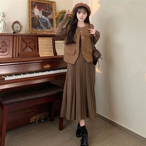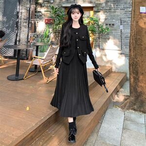 2025新款高领长袖两件套套装气质女神范显瘦休闲感法式马甲