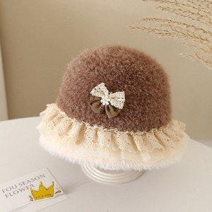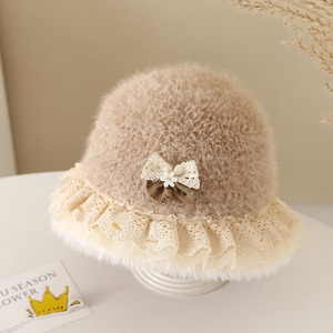 儿童帽子秋冬季毛绒渔夫帽可爱超萌公主帽幼儿保暖加厚韩版宫廷帽