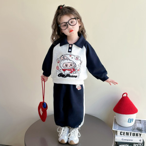 拉布布女童套装2025秋季新款女宝宝洋气卡通POLO领上衣卫裤两件套