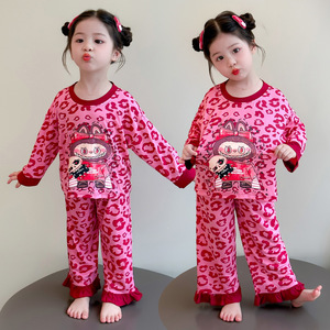 豹纹拉布布女童睡衣秋季儿童睡衣女孩长袖套装儿童家居服春秋时尚