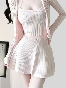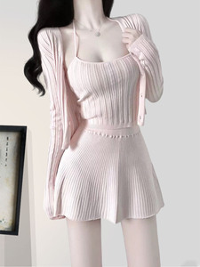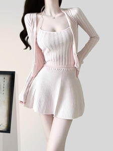 2025气质早秋新穿搭套装女韩系纯欲温柔风针织开衫上衣三件套裙装