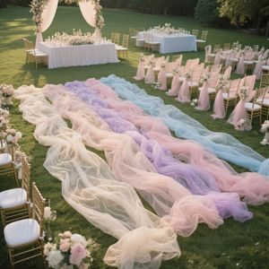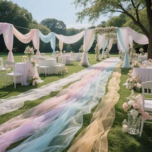 跨境婚礼派对多颜色组合网纱 户外派对现场装饰网纱 场景布置帷幔
