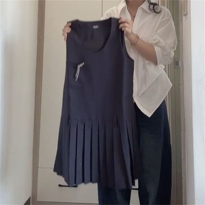 韩系穿搭一整套慵懒风无袖百褶背带连衣裙女学生搭配蓝色绑带衬衫