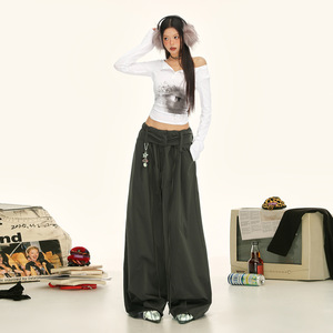 秋季美式街头新款休闲裤女宽松高腰舒适百搭垂感显瘦气球阔腿长裤