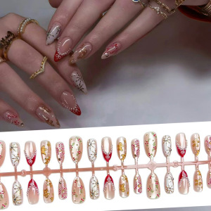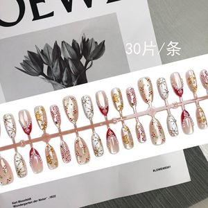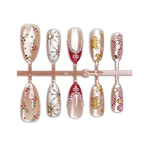 跨境外贸圣诞节欧美爆款穿戴甲批发猫眼姜饼人雪花美甲贴片鎏金