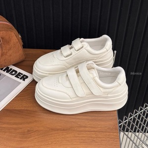 Monica2025真皮厚底小白鞋魔术贴舒适增高鞋百搭松糕鞋5372-03