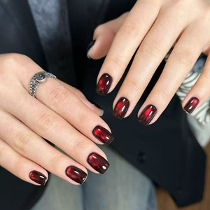 车厘子红猫眼高级质感气质少女风御姐风显白美甲短款30-T穿戴甲