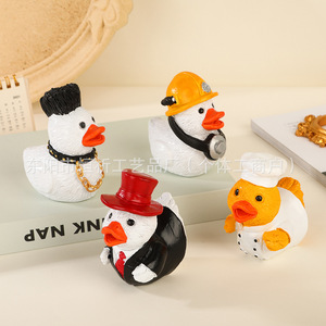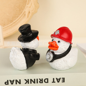 跨境新款圣诞节可爱鸭小摆件树脂工艺品办公室桌面装饰创意礼物