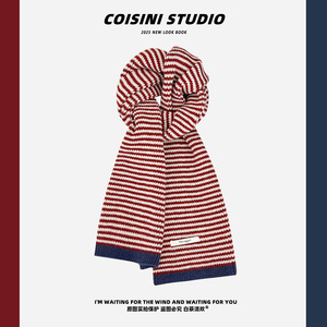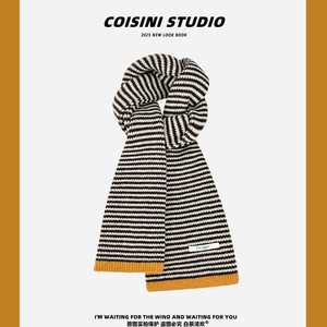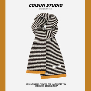 韩国订单2025新款韩版撞色条纹毛线围巾女秋冬季保暖百搭学生情侣