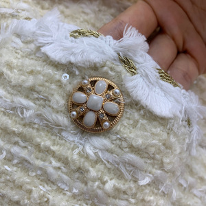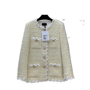 2025秋冬时尚韩系小香风格纹圆领粗花呢羊毛针织短款外套上衣女