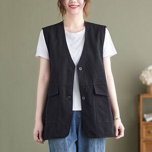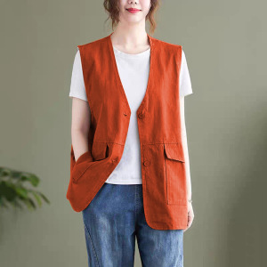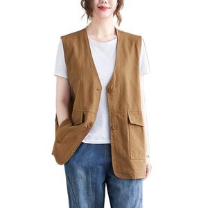 文艺宽松马甲女2025秋装大码胖MM上衣显瘦V领棉坎肩马夹无袖外套