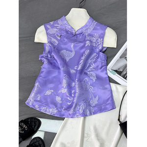787 紫色真丝老缎混纺立领马甲,S M L,不退不换!!